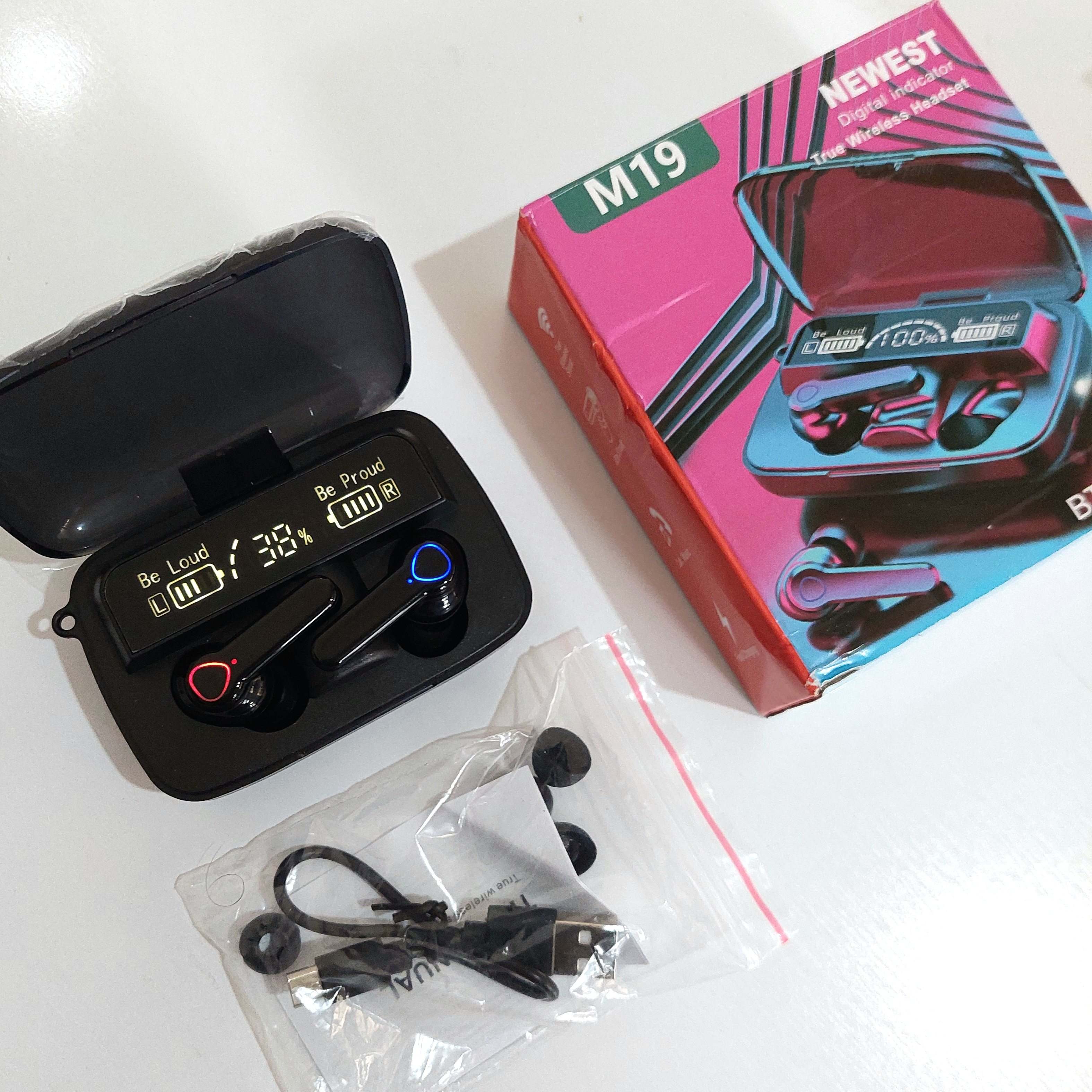 ایرپاد m19 نسخه های مختلف و درجه 2 و 3 داره که پاوربانک و کیفیت صدای ضعیف تر و بلوتوث قدیمی تری دارن اما ایرپادی که فروشگاه ما تقدیم شما میکنه بهترین نسخه و درجه 1 بازاره، m19 تنها ایرپاد زیر 300 هزار هست که چراغ قوه و پاوربانک رو باهم داره و ضد رطوبت و تعریق و پاشش آب هست